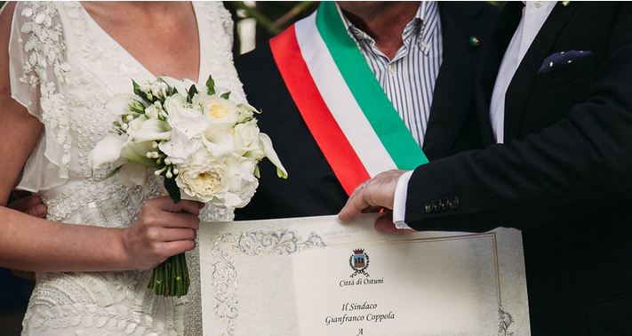 It is only a ten-minute walk from the venue to the ceremony location in the ancient courtyard of Ostuni Town Hall, where the Mayor celebrated and toasted with the newlyweds at the nearby bar in the main square.